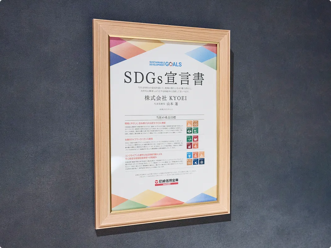 当社は外壁塗装による建物の長寿命化を通じて、資源消費の抑制と環境負荷の低減に貢献しています。建物ごとの状態を丁寧に診断し、最適な施工を行うことで、安心して住み続けられるまちづくりを支えています。また、資格取得支援や業務分担の工夫により社員の働きやすい環境を整備。法令遵守の徹底、適正な廃材処理、地域清掃や社会貢献活動にも取り組み、地域社会とともに持続可能な未来を築いていきます。